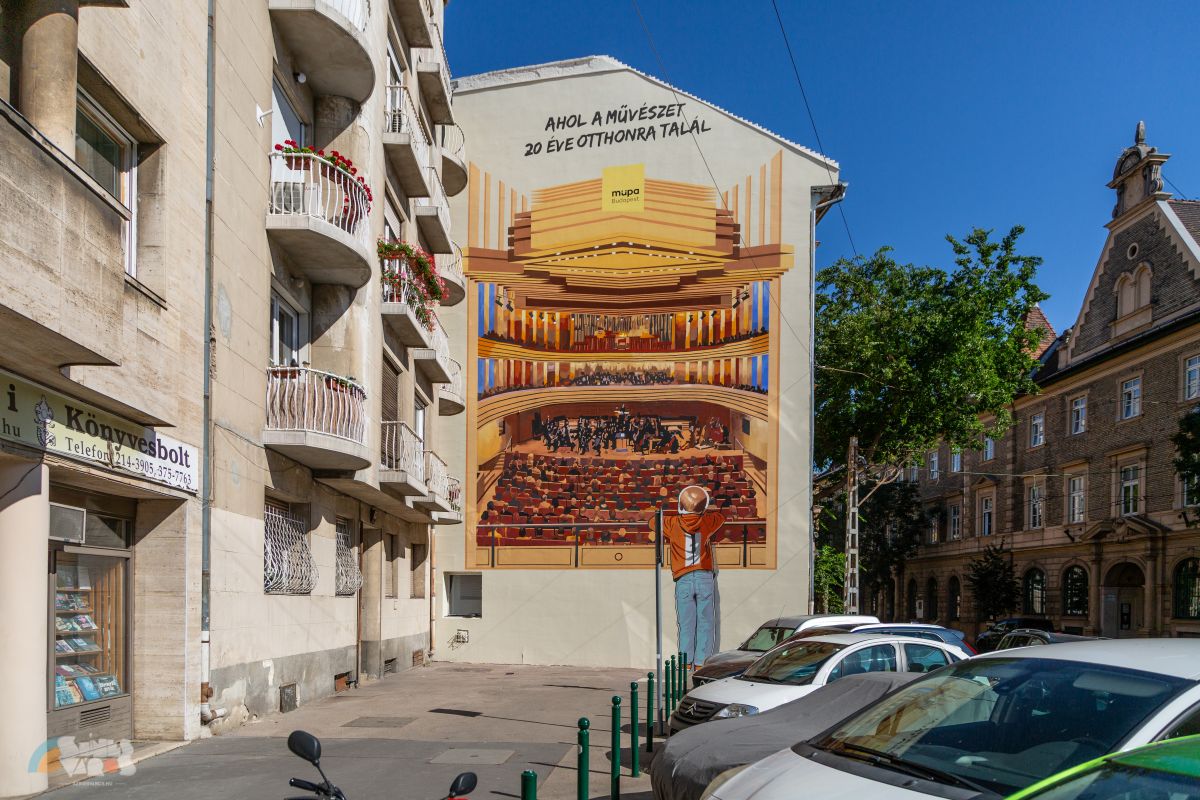 Hangversenyterem költözött a városfalra – A Müpa 20. jubileumi évének részeként a Krisztina körút 30. szám alatt készült el egy nagyméretű tűzfalfestmény, amely Budapest egyik meghatározó kulturális intézményét idézi meg. Váratlan találkozást teremt a kultúrával: az alkotás a Bartók Béla Nemzeti Hangversenyterem világát emeli át a városi térbe, és új vizuális réteggel gazdagítja a környezetet.